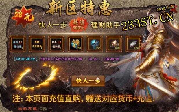 开通弑神赞助,4倍泡点直接快人一步,流光盾+5级天书到手,泡点到1100级配合沉默果实加速下大陆,前期抢先打高阶装备,提高魂之魔力下更多地图,二大陆提升盾牌解锁4X4范围群伤,这波“小氪怡情”的操作,直接让你成为“人形自走炮”!
